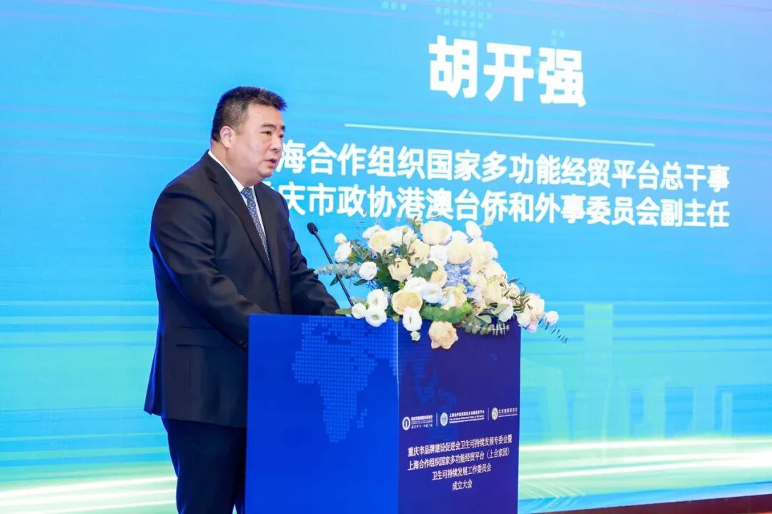 胡开强总干事为上海合作组织国家多功能经贸平台(上合家园)卫生可持续发展工作委员会授牌。