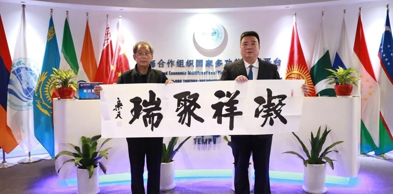 胡开强高度评价乐天先生在书法领域取得的艺术生涯与成就。他表示,在“上海精神”指引下,上合组织各领域合作跨越式发展,正积极推动构建上海合作组织命运共同体。作为上合组织框架下非营利性国际经贸组织,上海合作组织国家多功能经贸平台坚持弘扬“上海精神”,正深入践行历次上合组织成员国元首理事会决议,围绕“构建数字经济与传统经济深度融合的上合新生态”核心任务,以行业工作委员会融合多种所有制市场主体推动构建以中企“链主”企业为引领的上合国家产业协同创新生态,助力地方政府招商引资,力求打通不同所有制企业之间的合作壁垒,探索建立“上合标准”,为生产力全球重新布局奠定基础。他强调,民心相通是贸易畅通的基础。平台高度重视文化艺术在国际交流中的桥梁作用,并通过举办文化艺术活动、赛事等各类丰富举措,务实促进上合组织国家间文化艺术的交流与融合,为构建上合组织人文共同体持续贡献力量。