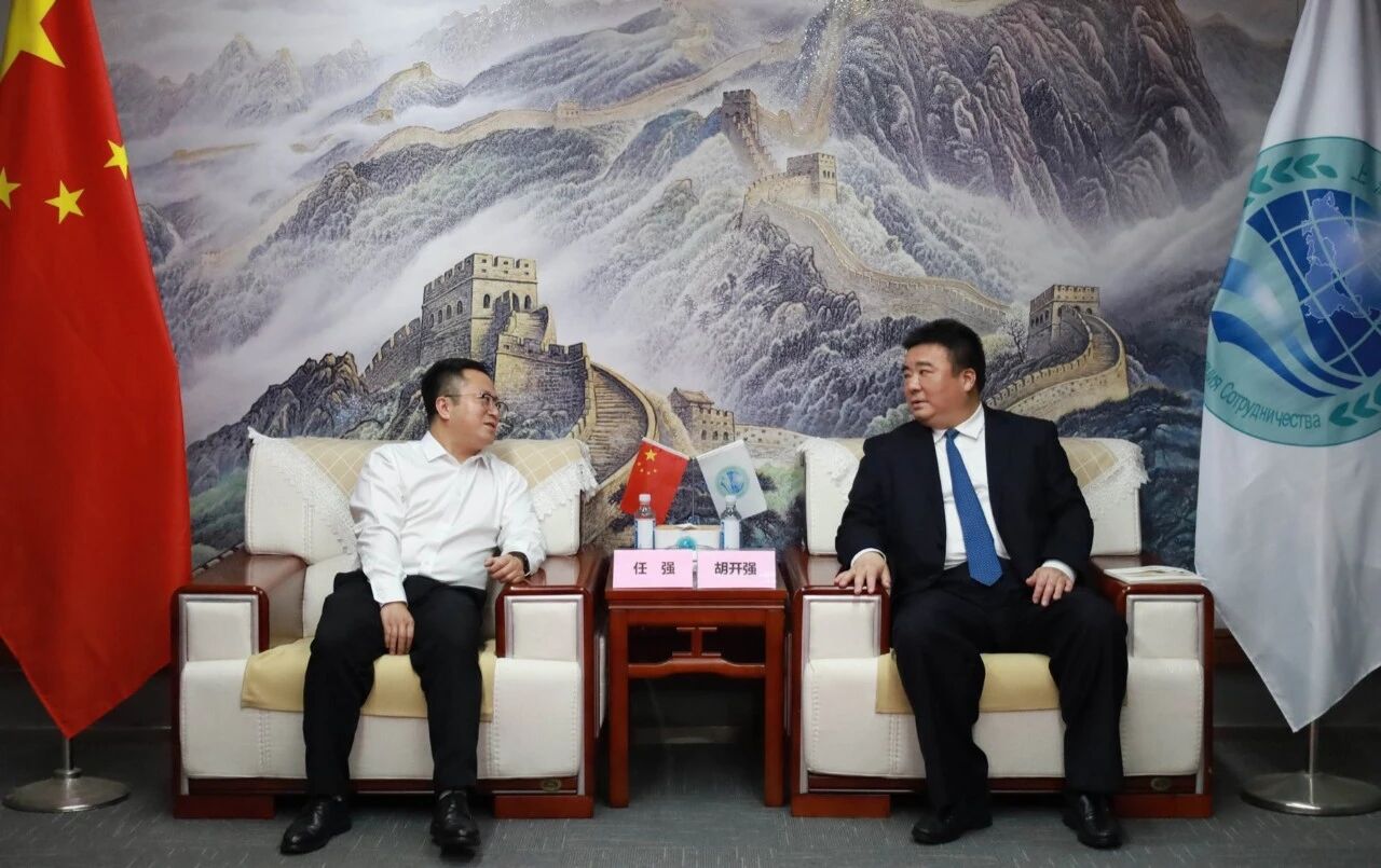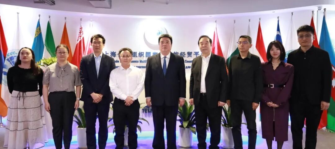 上海合作组织国家多功能经贸平台总干事、重庆市政协港澳台侨和外事委员会副主任胡开强欢迎任强一行,张光福副秘书长、平台智库高级顾问邝正平陪同会见。