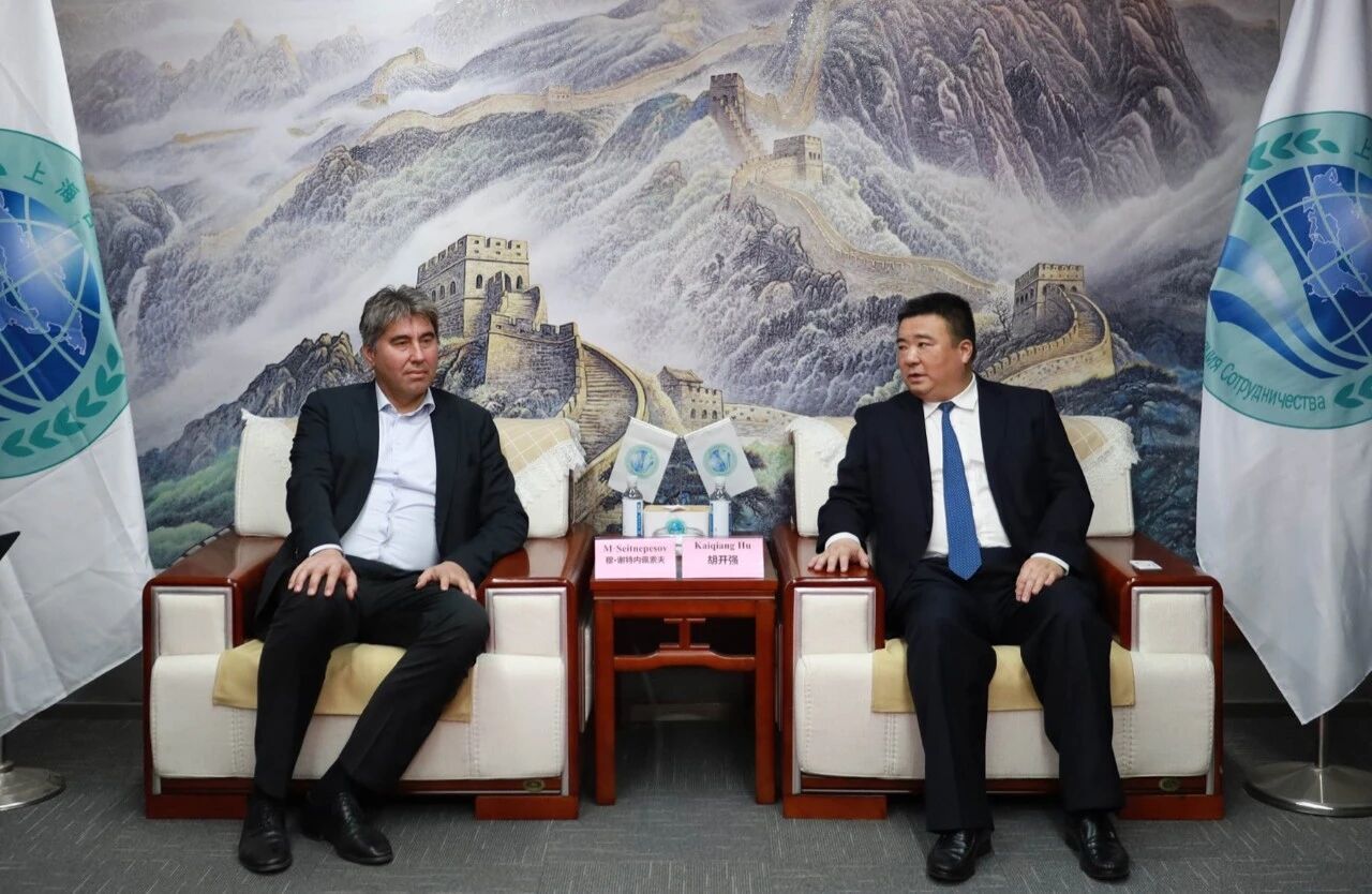 2026年4月22日,上海合作组织副秘书长戴思泽在秘书处会见了“跨里海”协会主席谢伊特涅佩索夫。(图片来源:上海合作组织秘书处公众号)