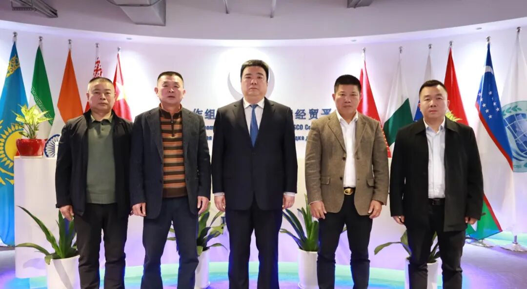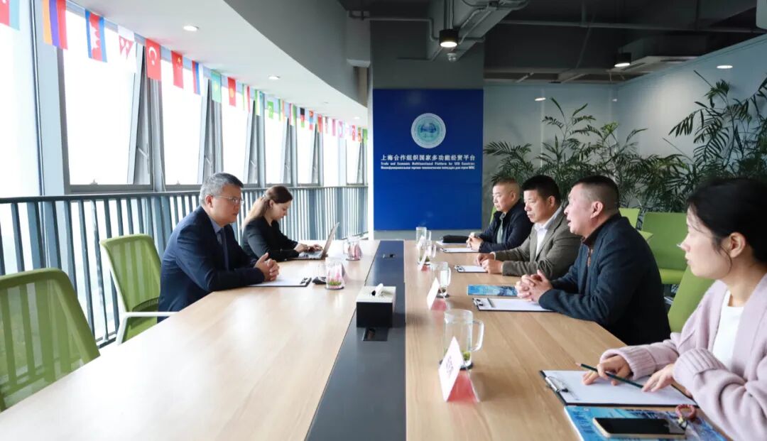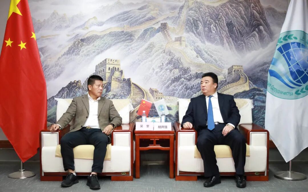 上海合作组织国家多功能经贸平台总干事、重庆市政协港澳台侨和外事委员会副主任胡开强欢迎吴奎一行,张光福副秘书长陪同会见。