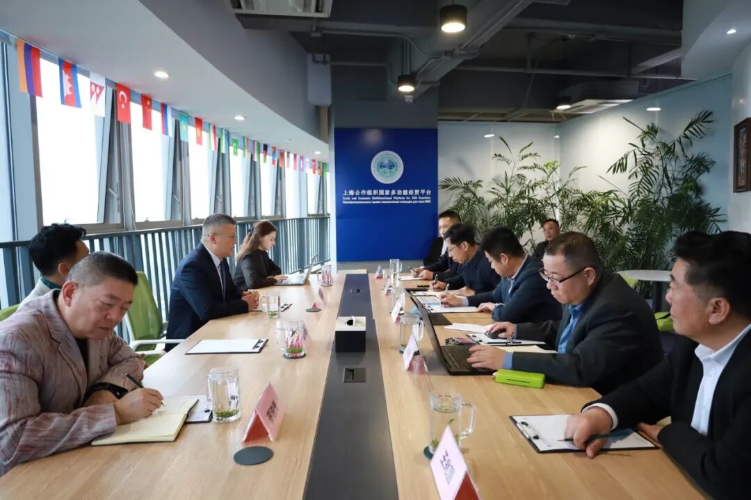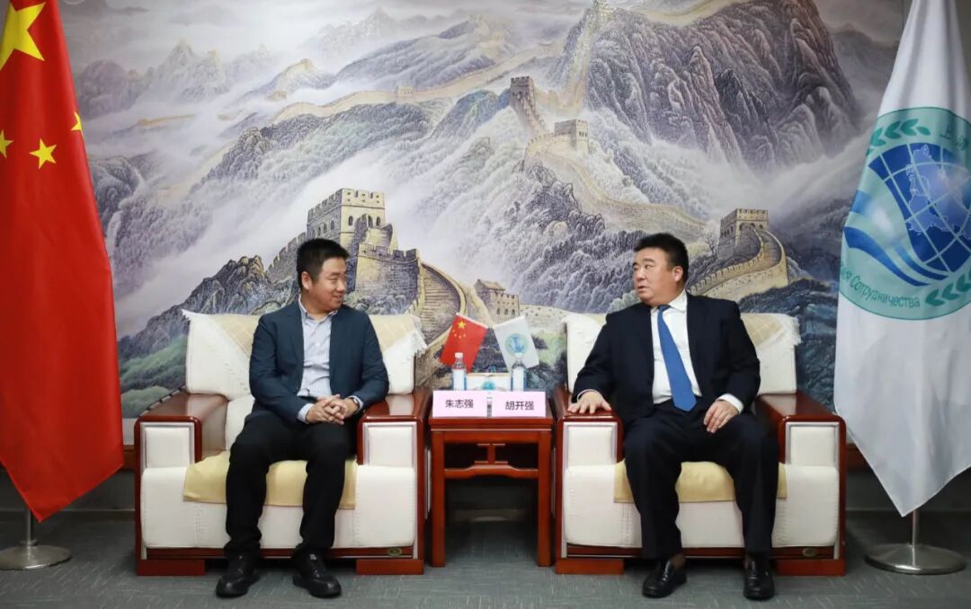 上海合作组织国家多功能经贸平台总干事、重庆市政协港澳台侨和外事委员会副主任胡开强欢迎朱志强一行,张光福副秘书长陪同会见。