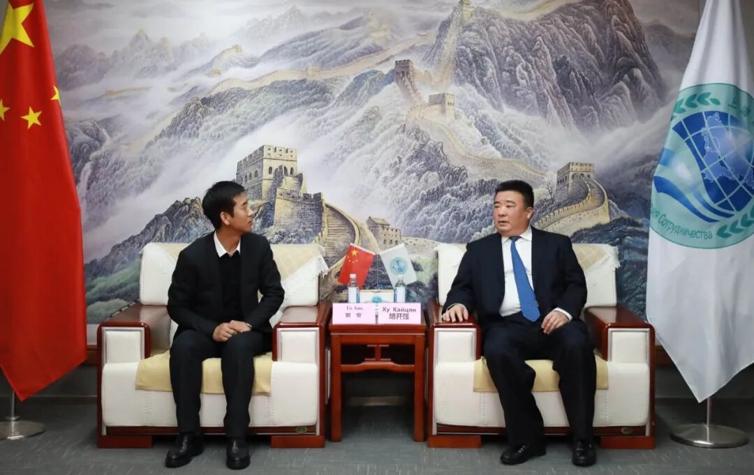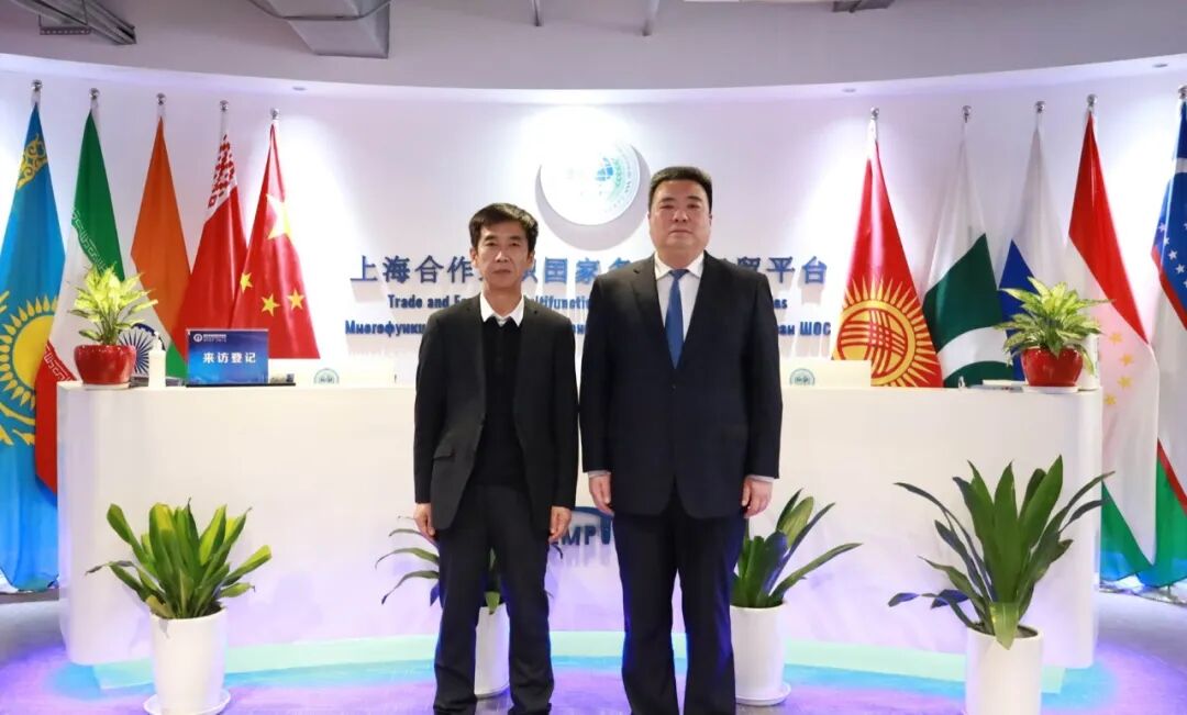 上海合作组织国家多功能经贸平台总干事、重庆市政协港澳台侨和外事委员会副主任胡开强欢迎郭安一行,王健平副秘书长陪同会见。