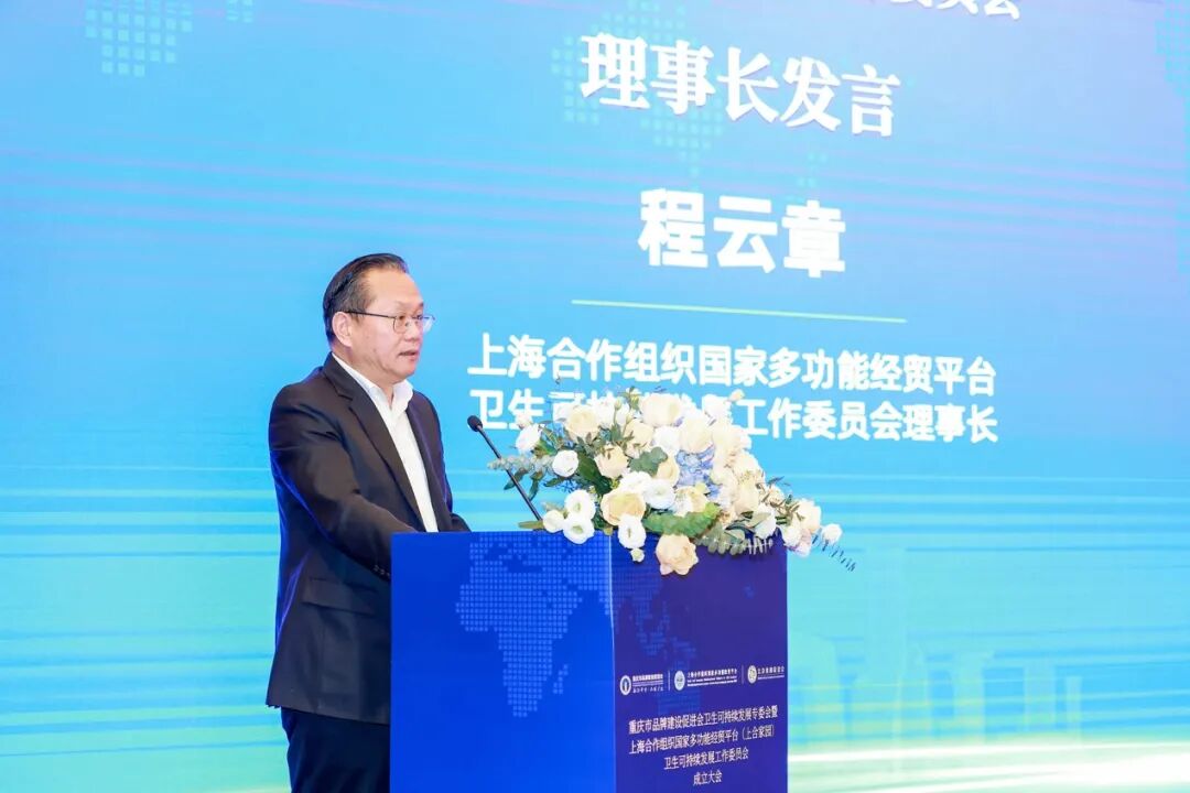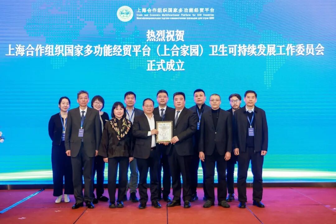 胡开强总干事为上海合作组织国家多功能经贸平台(上合家园)卫生可持续发展工作委员会授牌。