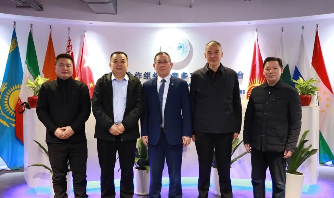 刘杰副秘书长代表上海合作组织国家多功能经贸平台总干事、重庆市政协港澳台侨和外事委员会副主任胡开强欢迎李铭一行。