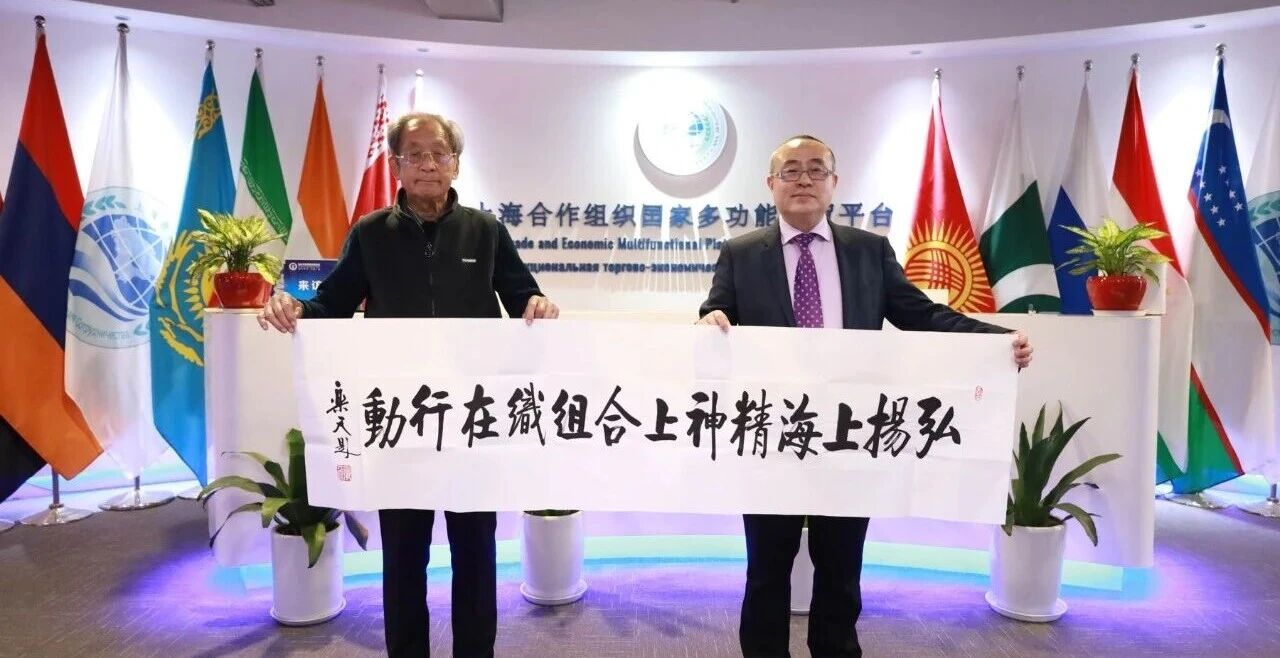 胡开强高度评价乐天先生在书法领域取得的艺术生涯与成就。他表示,在“上海精神”指引下,上合组织各领域合作跨越式发展,正积极推动构建上海合作组织命运共同体。作为上合组织框架下非营利性国际经贸组织,上海合作组织国家多功能经贸平台坚持弘扬“上海精神”,正深入践行历次上合组织成员国元首理事会决议,围绕“构建数字经济与传统经济深度融合的上合新生态”核心任务,以行业工作委员会融合多种所有制市场主体推动构建以中企“链主”企业为引领的上合国家产业协同创新生态,助力地方政府招商引资,力求打通不同所有制企业之间的合作壁垒,探索建立“上合标准”,为生产力全球重新布局奠定基础。他强调,民心相通是贸易畅通的基础。平台高度重视文化艺术在国际交流中的桥梁作用,并通过举办文化艺术活动、赛事等各类丰富举措,务实促进上合组织国家间文化艺术的交流与融合,为构建上合组织人文共同体持续贡献力量。