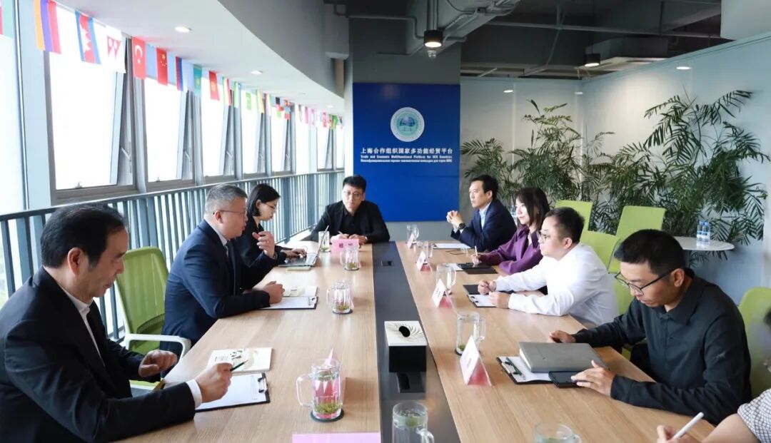 上海合作组织国家多功能经贸平台总干事、重庆市政协港澳台侨和外事委员会副主任胡开强欢迎任强一行,张光福副秘书长、平台智库高级顾问邝正平陪同会见。